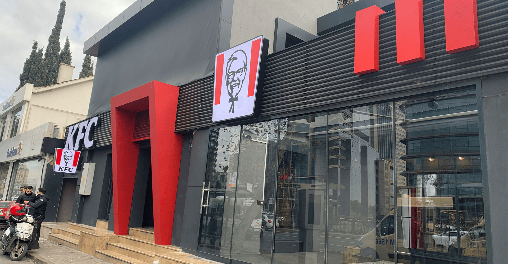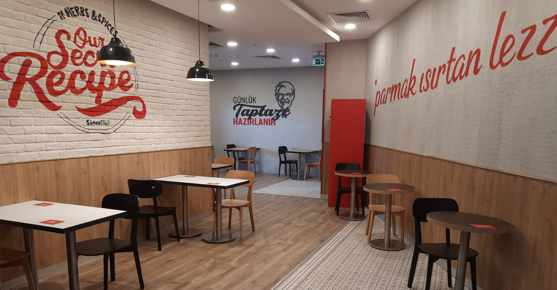 KFC Türkiye için 2020 Haziran ayında başlayan çalışmalarımız devam etmektedir. Şu ana kadar İstanbul’da LENS AVM, Kavacık-Rüzgarlıbahçe ve Vialand AVM şubeleri tamamlanmış ve İzmir, Bursa, Ankara dahil birçok ilde açılacak yeni şubeler için çalışmalar devam etmektedir